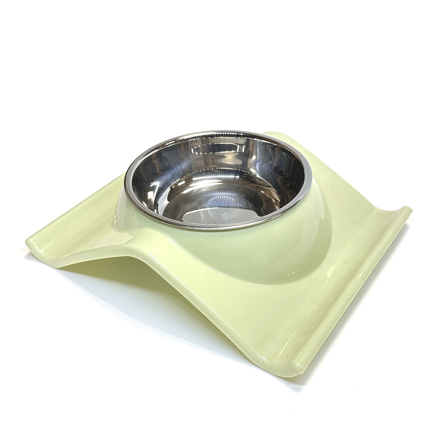 Металлическая миска с минималистической пластиковой подставкой для кормления Вашего питомца.