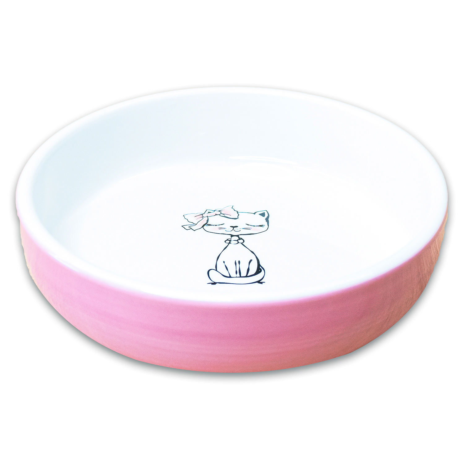 Миска Mr.Kranch Кошка с бантиком для кошек керамическая Лиловая, 370мл