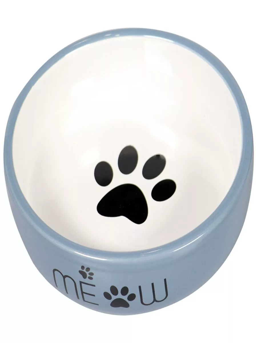 Биколорная керамическая миска для кошек с изображением лапок и надписью Meow. Стильный дизайн впишется в любой смелый интерьер. Миска выполнена из качественной керамики. Не выцветает и не теряет своих свойств. Удобно использовать и легко мыть. Объем 380 мл.