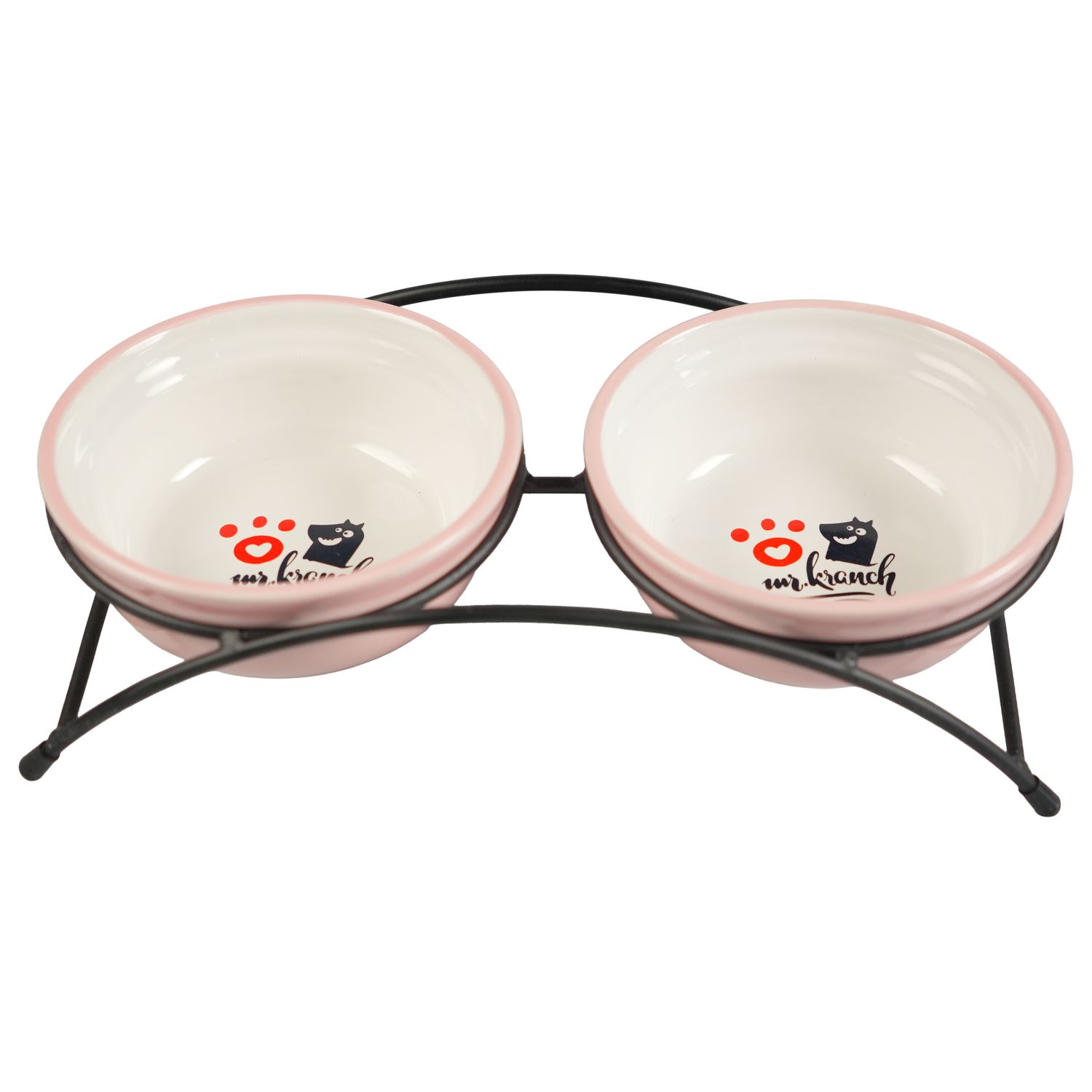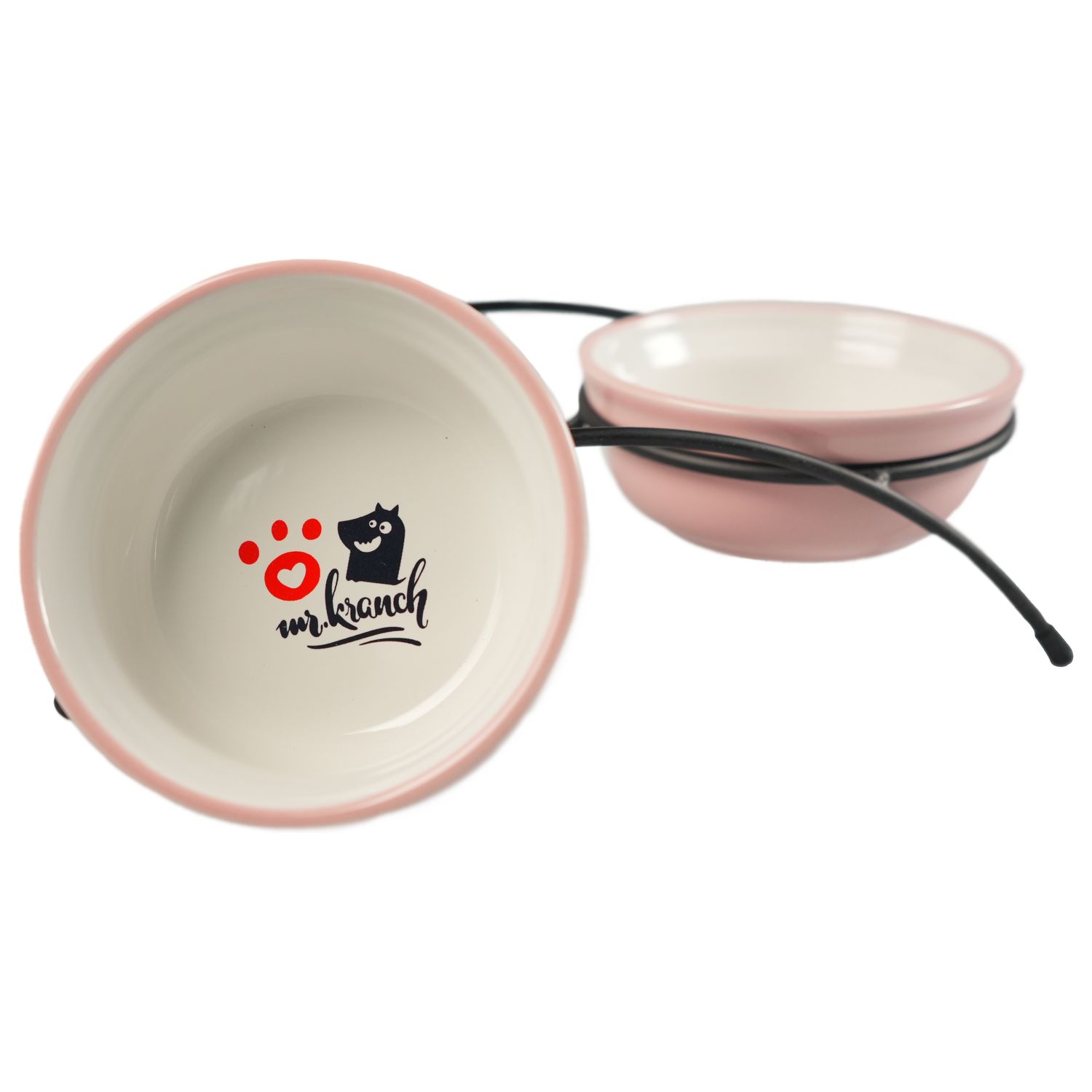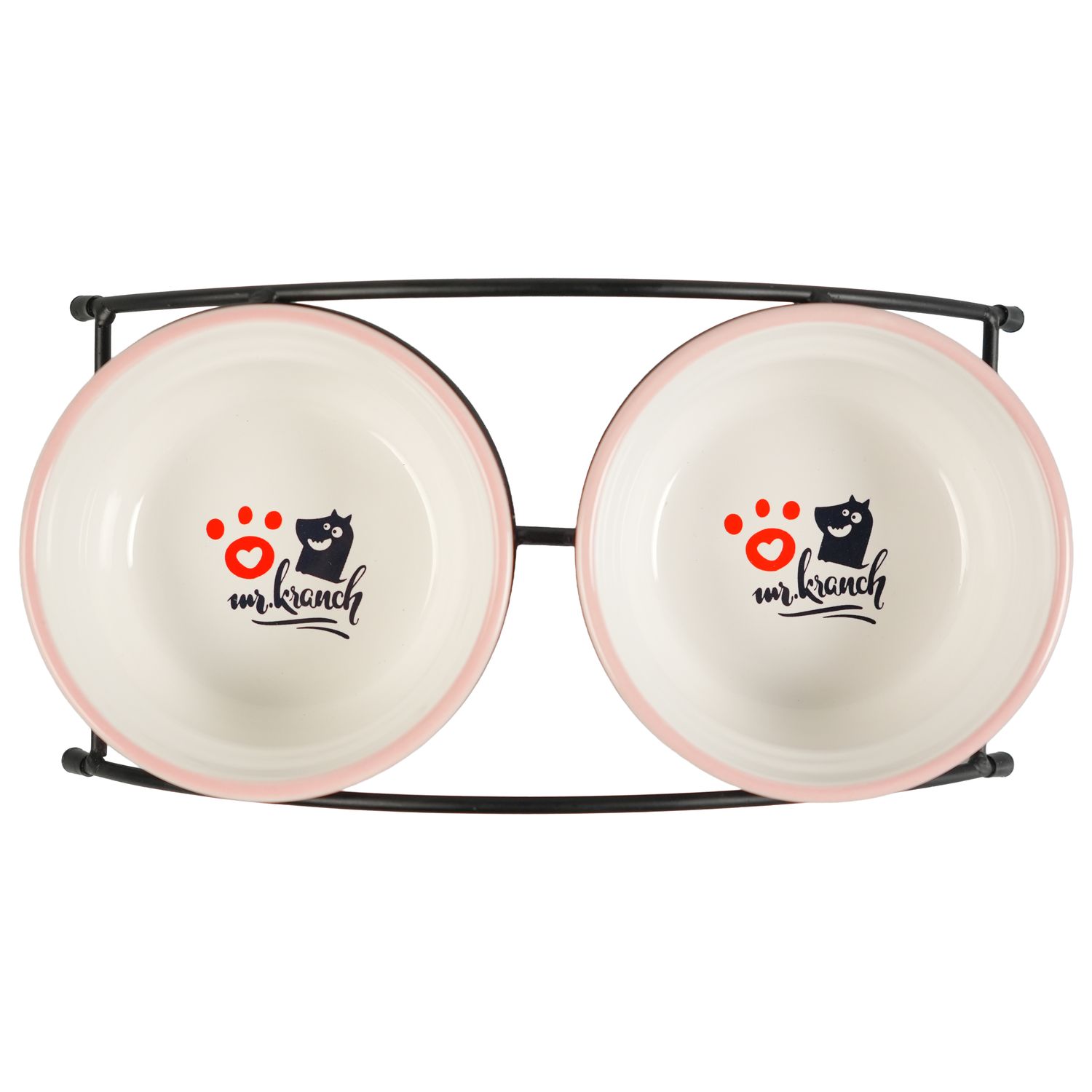 Миска Mr.Kranch на подставке для собак и кошек двойные 2*290мл с лапкой, розовые