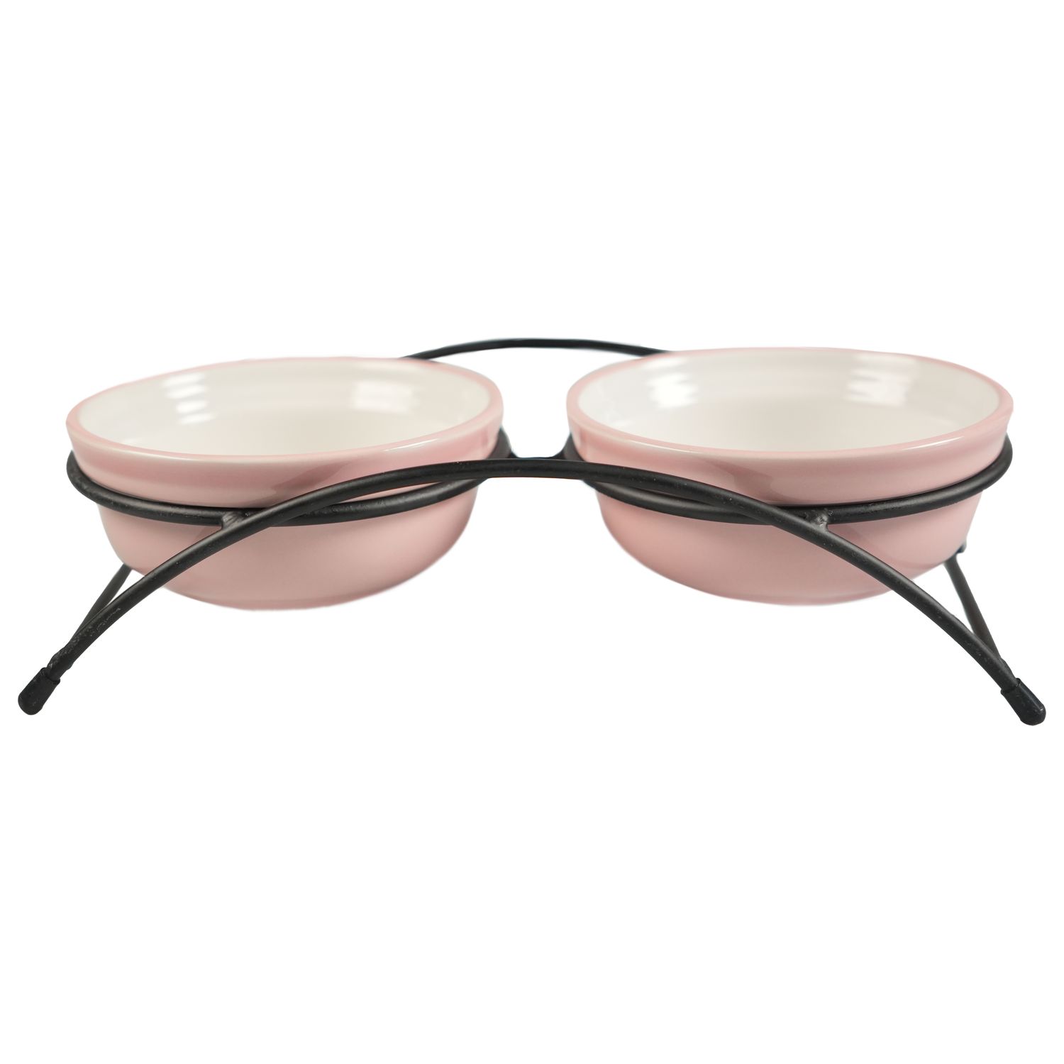 Керамическая миски Mr.Kranch двойные на подставке – это стильное и элегантное дополнение к любому интерьеру. Изготовлена из высококачественной керамики, которая не только красива, но и практична в использовании. Материал миски гарантируют ее долговечность и сохранность эстетического вида. Керамика не выцветает и не теряет своих свойств. Можно использовать для корма или лакомств. Можно мыть в посудомоечной машине. Объем миски: 2х290 мл.