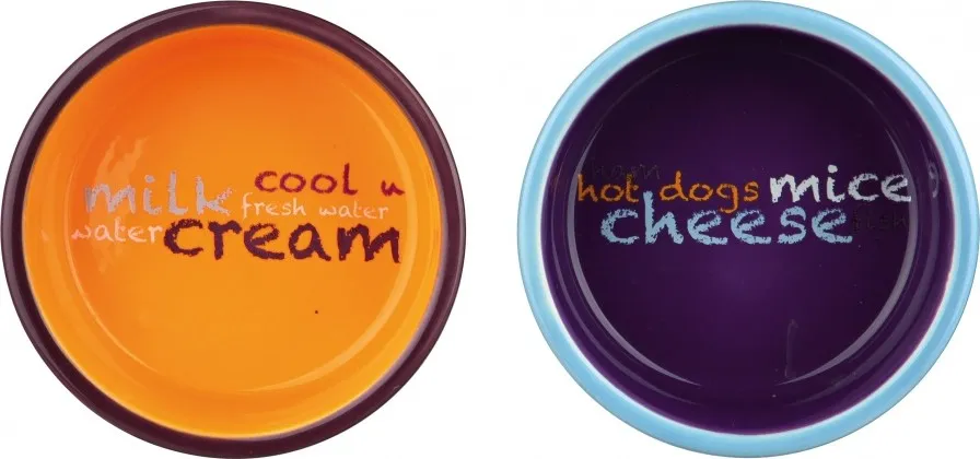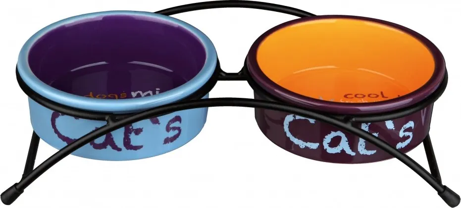 Миска для кошек, "Eat on Feet" 0.3 л/диам.12 см. Керамика, 2 миски с металической подставкой черного цвета. Не скользит, благодаря резиновым ножкам.