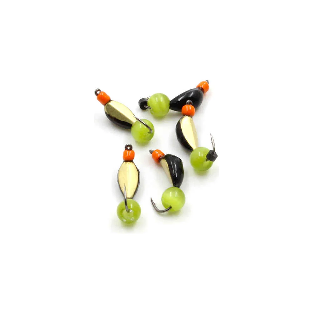Изготовлены из вольфрама, основной особенностью которого является больший вес при меньших размерах, по сравнению со свинцовыми мормышками. Благодаря этому есть возможность применять более деликатные снасти и с успехом ловить даже самую осторожную рыбу. Безнасадочные мормышки позволяют отказаться от использования живой насадки и при этом их уловистость не снижается.