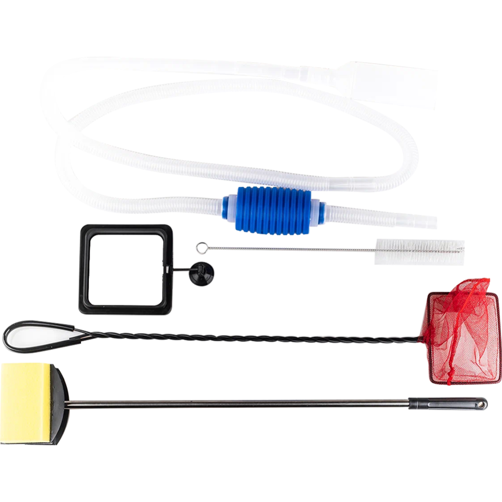 Комплектация: Для аквариумов от 40 л: сифон, кормушка, ершик, скребок, сачок.
