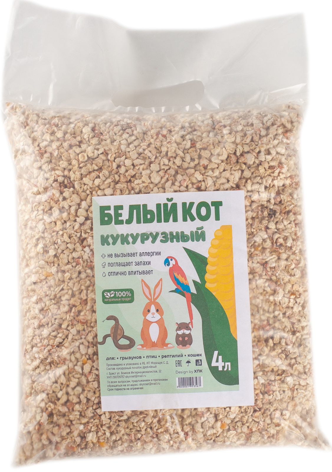 Наполнитель для туалета растительный впитывающий Белый кот Кукурузный средняя фракция 3-6 мм моментально поглощает все запахи и сохраняет свежесть надолго.