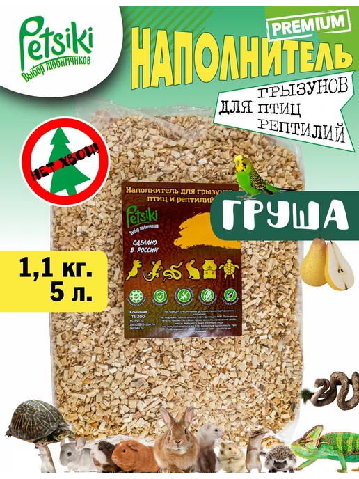 Наполнитель древесный Petsiki для грызунов, птиц и рептилий антибактериальный Груша, 5л (1,1кг)