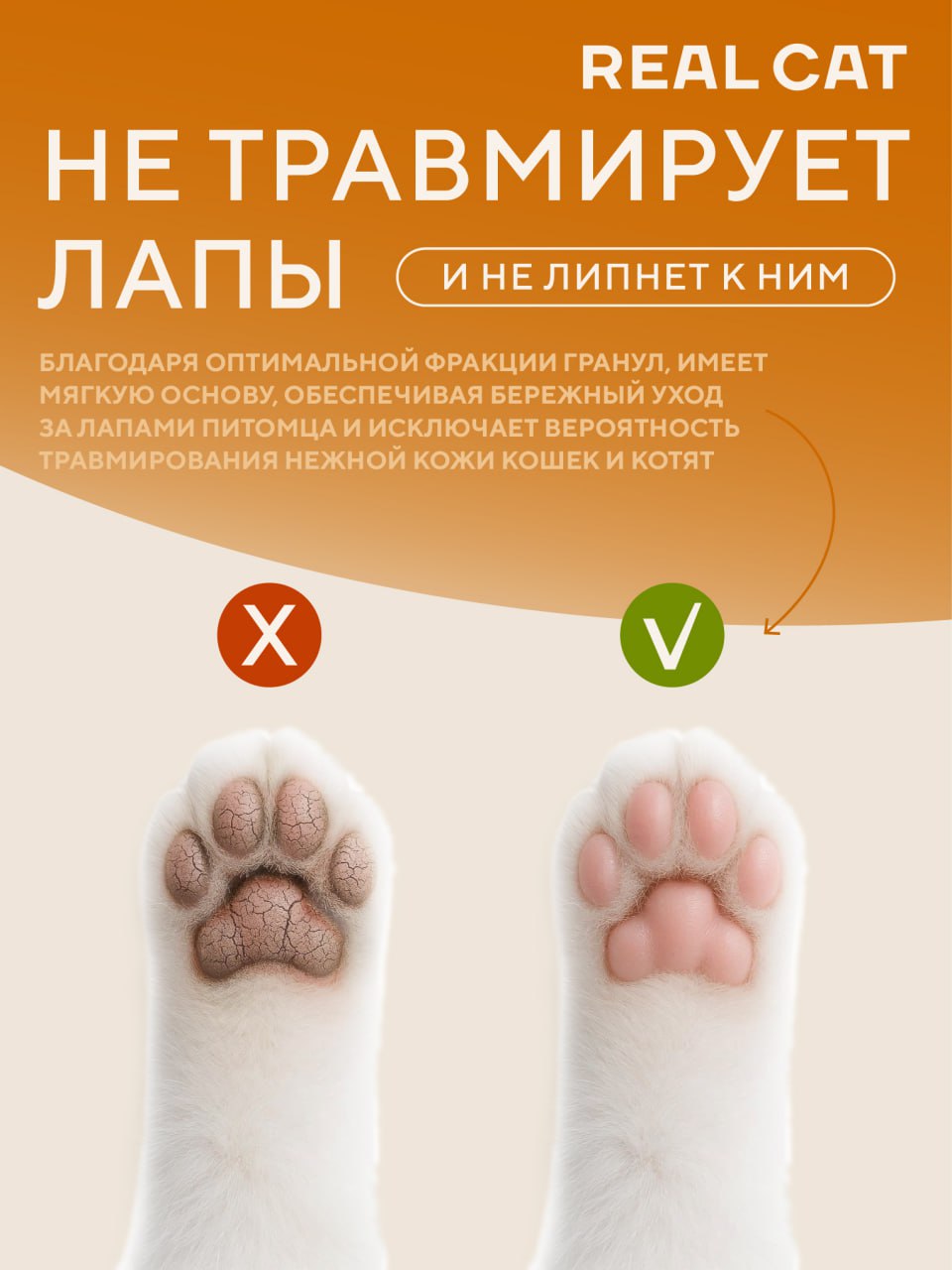 3. Устранение запахов: благодаря своей структуре, соевый наполнитель REAL CAT, является абсорбентом и нейтрализует неприятные запахи. Жидкость, попадая на гранулы, не растекается, не застаивается, и запах блокируется внутри наполнителя.