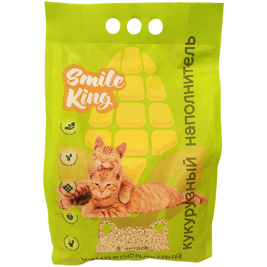 • Универсальный кукурузный наполнитель для туалета Smile King гипоаллергенный, не токсичен, безвреден для окружающей среды и животных.