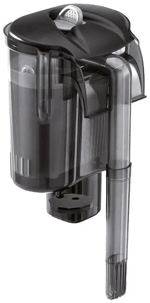 Фильтр необходимо повесить на стенку аквариума, располагая всасывающую насадку внутри аквариума. Для того, чтобы корпус плотно прилегал к стенке, необходимо использовать регулятор, расположенный в нижней части корпуса.