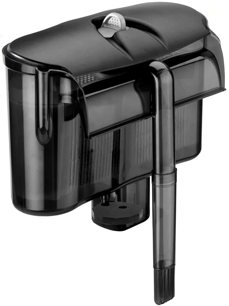 Фильтр необходимо повесить на стенку аквариума, располагая всасывающую насадку внутри аквариума. Для того, чтобы корпус плотно прилегал к стенке, необходимо использовать регулятор, расположенный в нижней части корпуса.