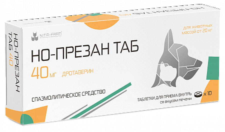 15. Но-презан® ТАБ применяют кошкам и собакам перорально индивидуально или в смеси с кормом в разовой дозе 1–3 мг дротаверина гидрохлорида на 1 кг массы тела животного, при этом суточная доза не должна превышать 3 мг дротаверина гидрохлорида на 1 кг массы тела животного. Допускается деление суточной дозы на 2–3 приема. В зависимости от тяжести заболевания доза, кратность и курс применения может определяться индивидуально ветеринарным врачом.Наиболее удобным является применение Но-презан® ТАБ 4 животным массой тела до 5 кг, Но-презан® ТАБ 20 – животным массой тела от 5 до 20 кг, Но-презан® ТАБ 40 – животным массой тела от 20 кг.Приём корма не влияет на биодоступность действующих веществ лекарственного препарата.