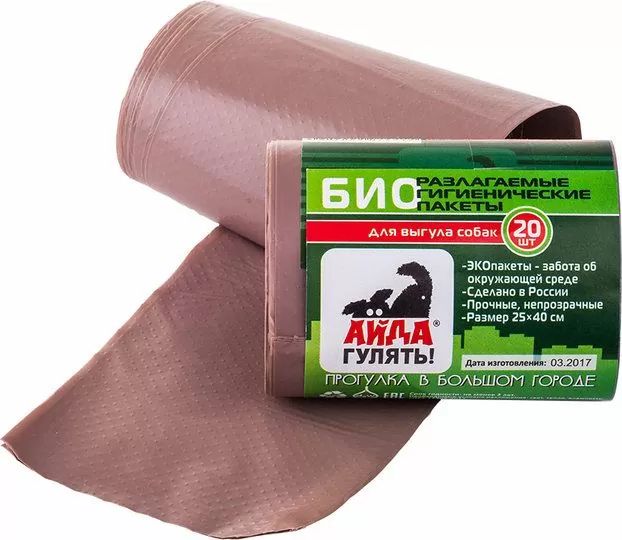Пакеты биоразлагаемые "Айда гулять!" для выгула собак, коричневые, 20шт