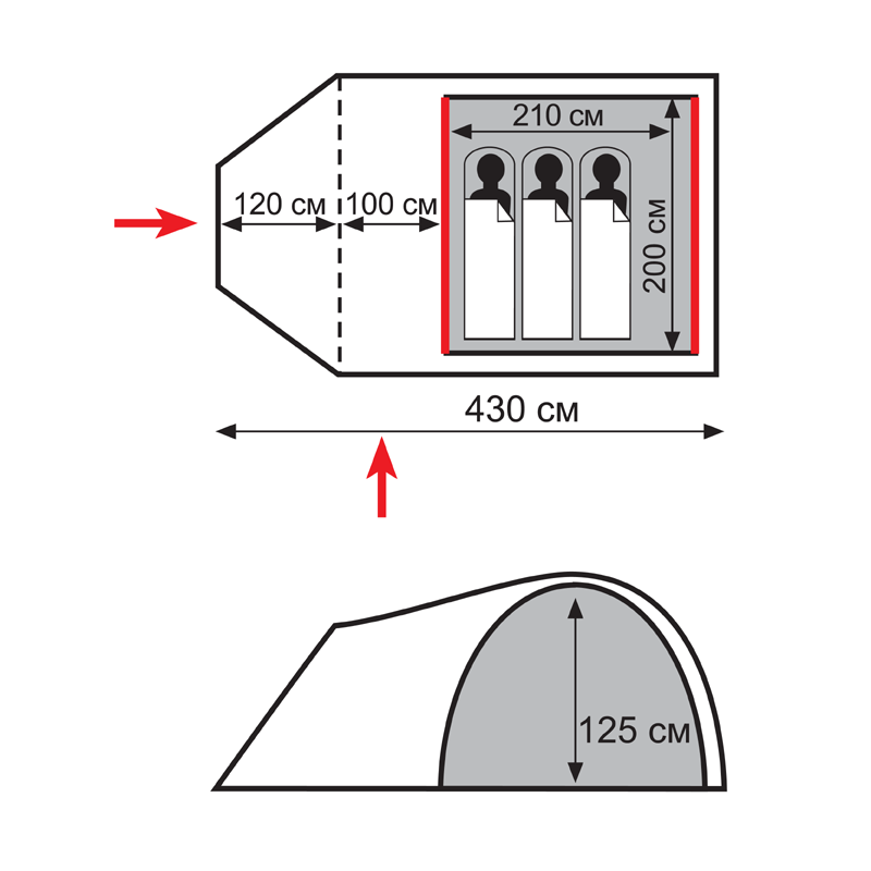 • Внутренняя палатка: 100% дышащий полиэстер;