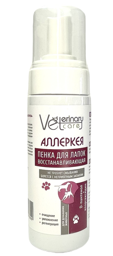 Пенка удаляет грязь, пыль, бактерии, микробы и другие следы прогулок, не требует смывания водой, что позволяет использовать пенку в любых условиях. Входящий в состав D-пантенол способствует заживлению ран и трещин. а хлоргексидин и гиппоаллергенная отдушка борются с неприятными запахами и дают ощущение чистых вымытых лап. Пенка для лапок восстанавливающая «Аллеркея» не сушит и не раздражает кожу домашних любимцев.