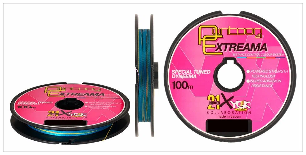 Команда Pontoon21 представила линейку Extreama в версии New Generation. Она производится по полностью автоматизированной технологии. При этом используются 4 жилы из специальным образом ориентированного на уровне молекул полиэтилена. Они обрабатываются защитным составом и потом сплетаются. В результате удалось достичь более круглого сечения, низкой растяжимости и отличной сенсорики. Поверхность гладкая, что улучшает кастинговые показатели. Плетенки устойчивы к абразиву, подходят для ловли в сложных местах с подводной растительностью. Линейка выпускается на японском заводе, что говорит о тщательном контроле качества.