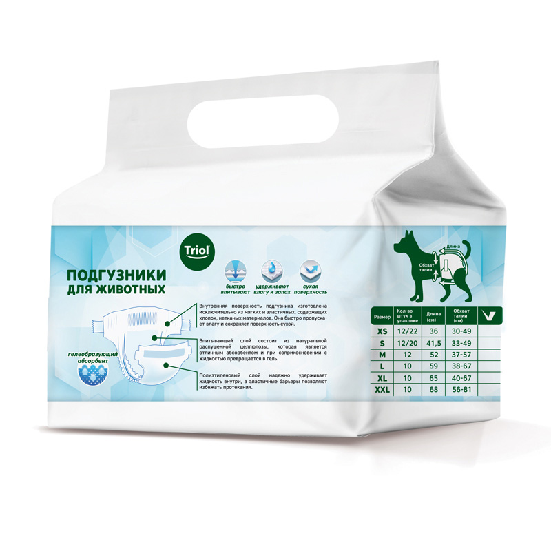 Подгузники Triol HYGIENE для собак XS 2-4кг, 1шт.