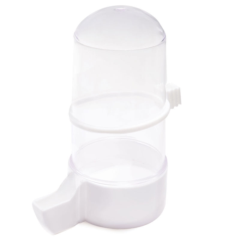 Эта удобная и функциональная поилка с узким носиком идеально подходит для мелких и средних птиц. При помощи специального крепления она легко устанавливается на прутьях клетки. Просто наполните ее чистой водой и закрепите при помощи держателя. Изделие удобно в эксплуатации и выполнено из прочного нетоксичного пластика, поэтому абсолютно безвредно для питомцев. Размер: 150 (высота); d70; 105мм (ширина). Объем: 320мл. Цвет: коричневый, белый.