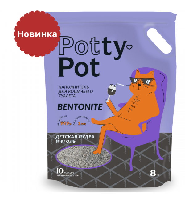 Наполнитель Potty Pot бентонитовый Детская пудра и уголь, 10л