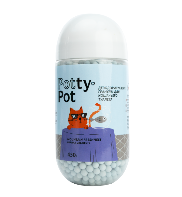 Дезодорирующие гранулы (шарики) Potty-Pot  предназначены для смешивания с кошачьим наполнителем, они тщательно поглощают неприятный запах, придают приятный аромат и обеспечивают комфорт.