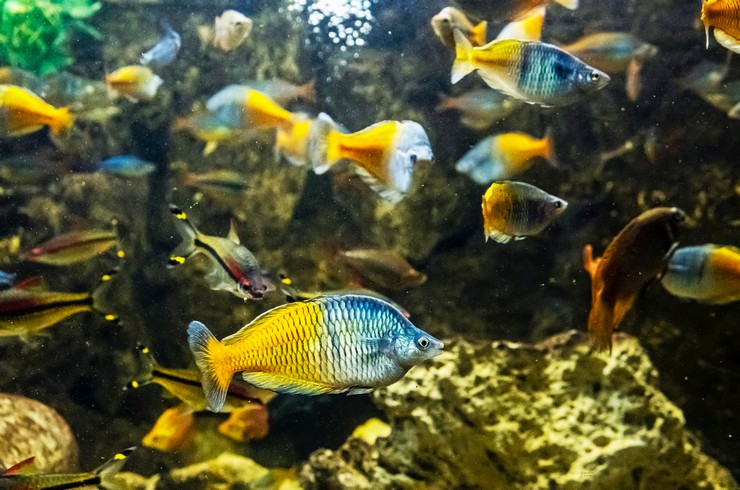 Иногда радужниц содержат с африканскими цихлидами, которые также любят жесткую воду.