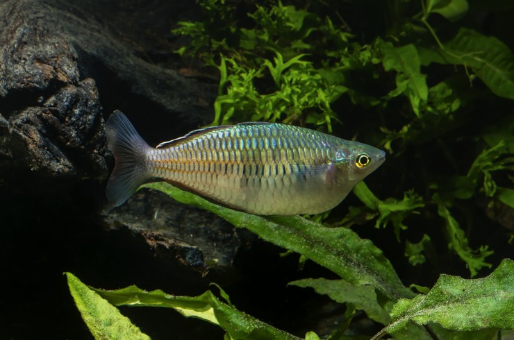 Мальки радужницы Боэсмана выглядят серыми и невзрачными, но стоит подержать их в просторном аквариуме с подходящими параметрами воды, покормить качественными кормами, и они превращаются в великолепных жителей.