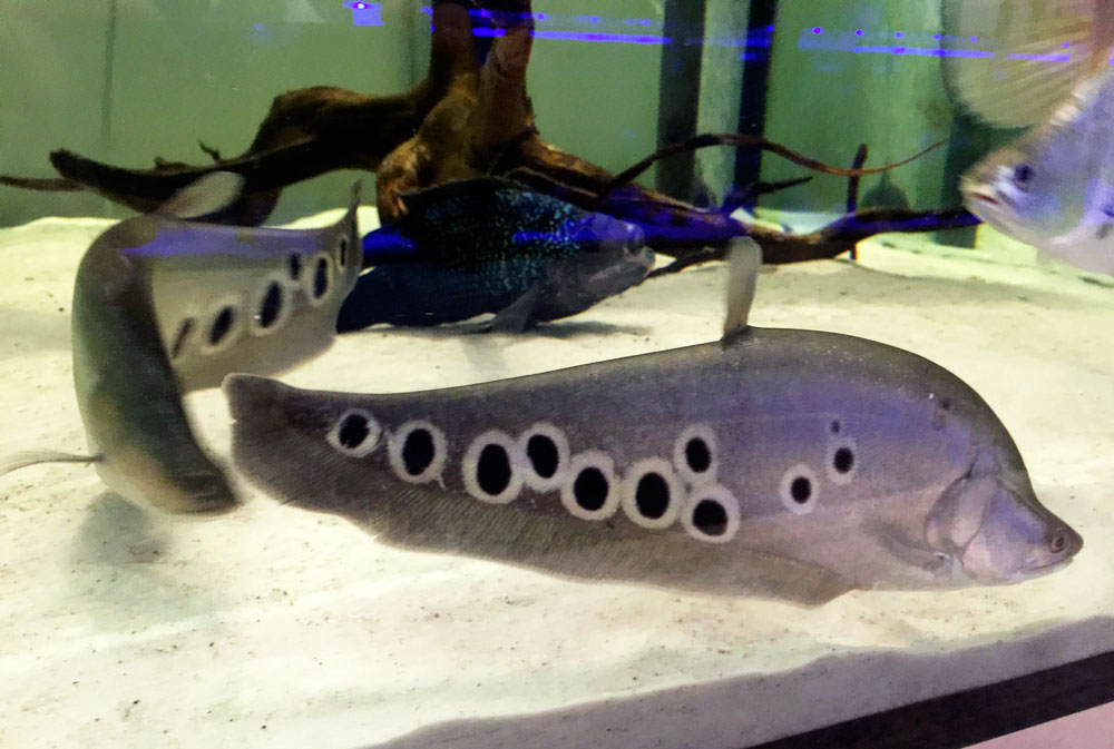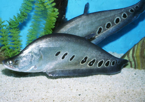 Рыба-нож индийский глазчатый — типичный хищник и предпочитает натуральную пищу.