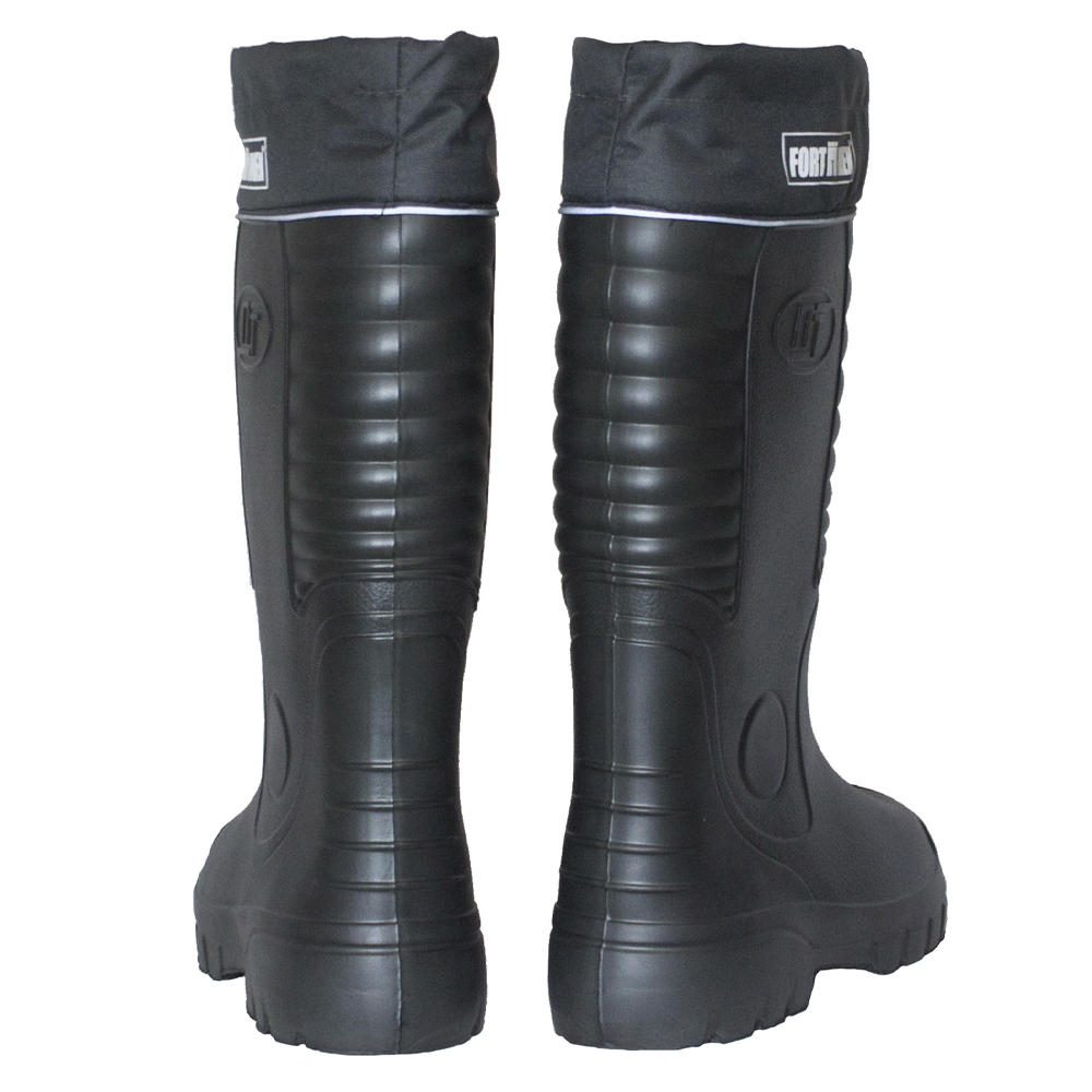 Сапоги резиновые для зимней рыбалки мужские FORTMЕN изготовлены из вспененного этиленвинилацетата, который благодаря своей пористой структуре обладает очень легким весом и низкой теплопроводностью. Также материал резиновых сапог мужских утепленных морозоустойчив и водонепроницаем, что обеспечивает сухость ногам в период снегокаш и рыхлого мокрого снега.