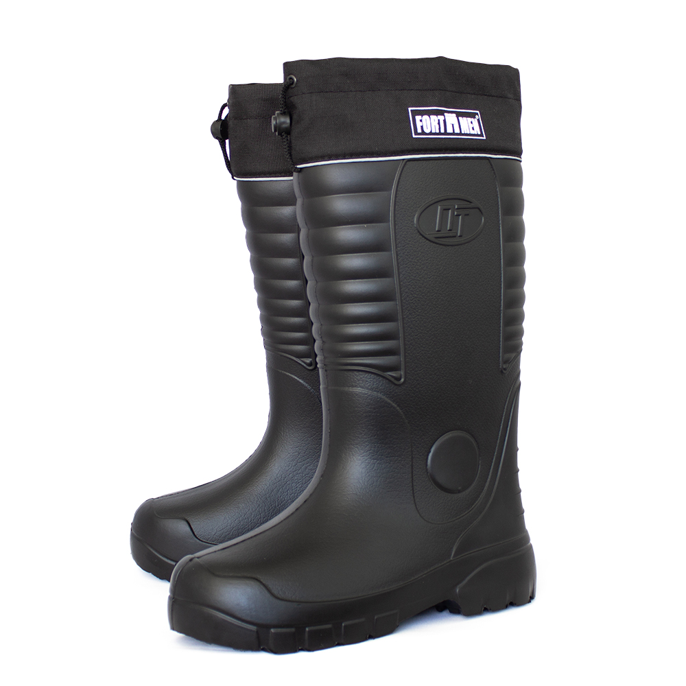 Сапоги резиновые для зимней рыбалки мужские FORTMЕN изготовлены из вспененного этиленвинилацетата, который благодаря своей пористой структуре обладает очень легким весом и низкой теплопроводностью. Также материал резиновых сапог мужских утепленных морозоустойчив и водонепроницаем, что обеспечивает сухость ногам в период снегокаш и рыхлого мокрого снега.