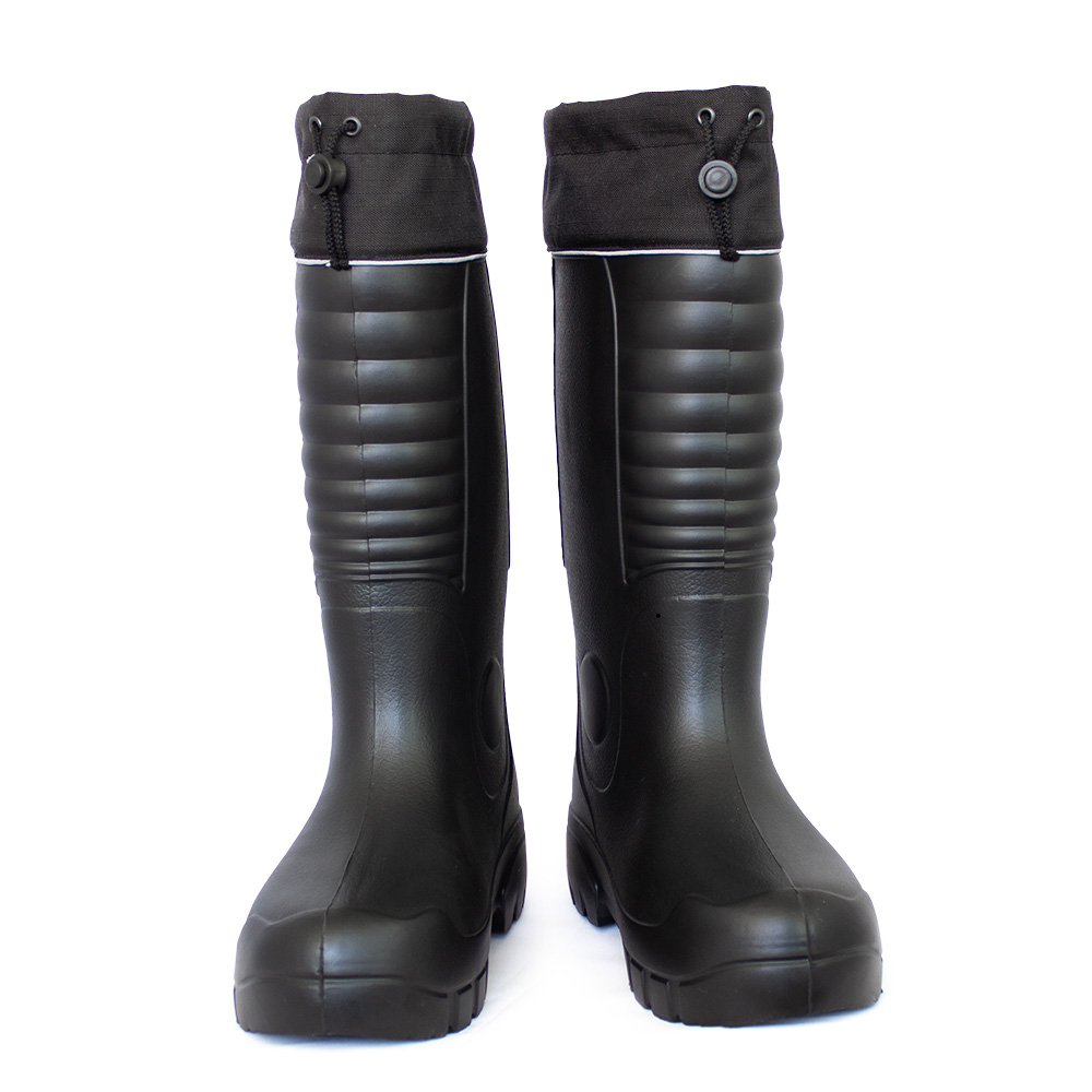 На верх голенищ установлены манжеты из водоотталкивающей ткани, с удобной системой утяжки на фиксаторе. Манжета предотвращает попадание внутрь сапога влаги и мелкого мусора. Манжеты выполнены с использованием светоотражающих элементов.