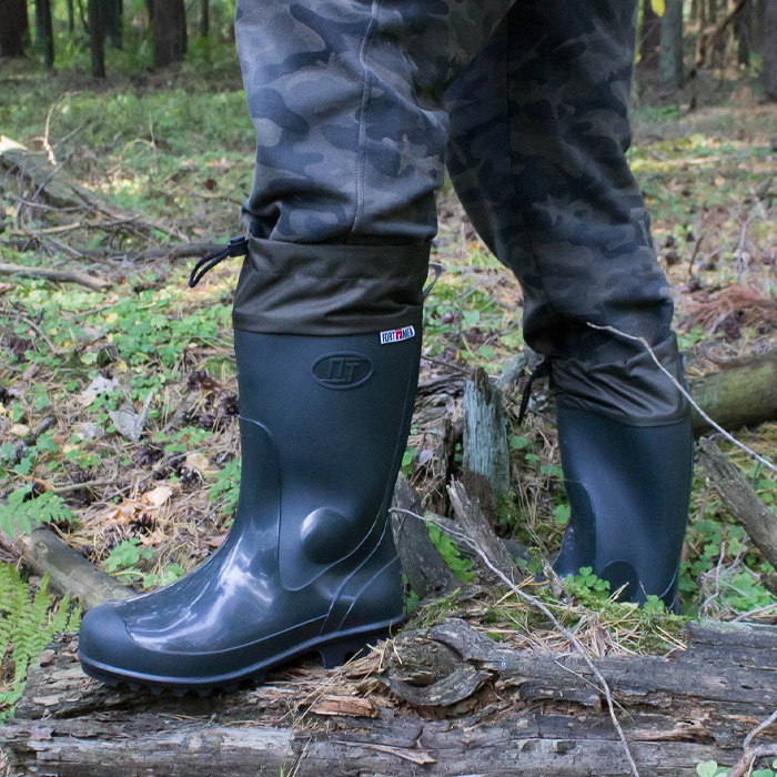 Классические резиновые сапоги с удобной формой и широким подъемом. Сапоги резиновые снабжены манжетой из водооталкивающей ткани с утягивающимися завязками против попадания внутрь мелкого мусора и влаги. Модель изготавливается из высококачественного пластиката ПВХ, что делает сапоги пластичнее и до 10-20% легче прочих аналогов.