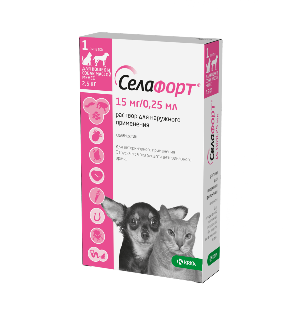 Капли на холку Селафорт KRKA от блох, клещей, глистов, а также при болезнях ушей и кожи для кошек и мелких собак до 2,5кг, 1шт*15мг/0,25мл