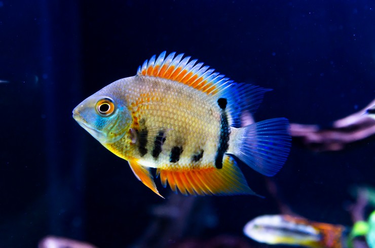• Характер: Относительно мирная для цихлиды, но может проявлять территориальность, особенно в период нереста. Рекомендуется содержать с крепкими, соразмерными соседями.