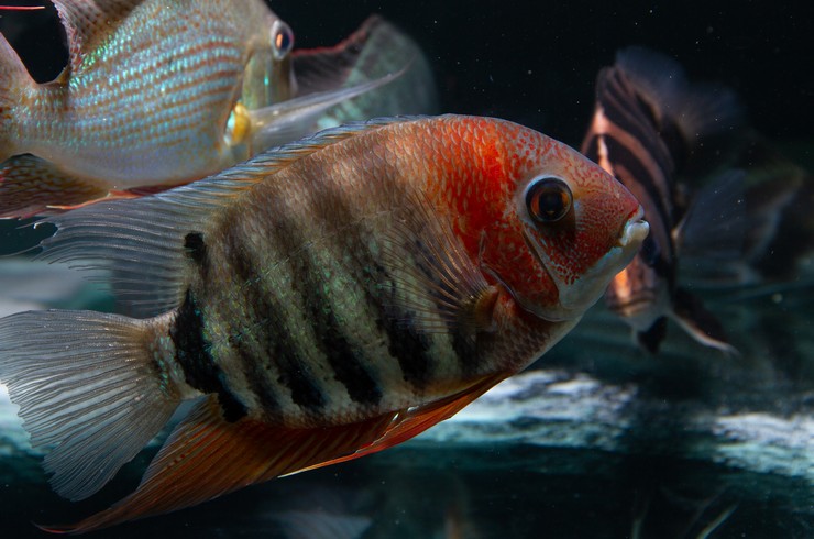 4. Совместимость: Хорошо уживаются с другими крупными, но не агрессивными рыбами, такими как крупные сомы (плекостомусы, торакатумы), другие виды северумов или умеренно агрессивные американские цихлиды.