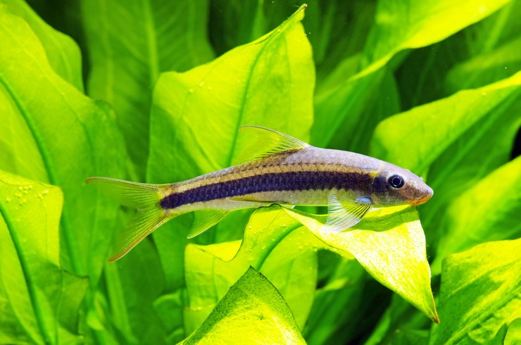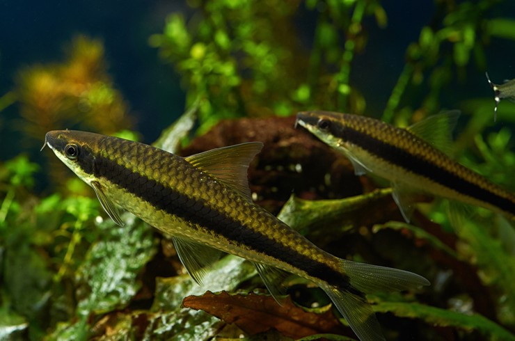 Сиамские водорослееды при отдыхе опираются на грунт и растения брюшными плавниками.