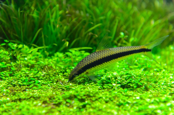 Высшие растения рыбки обычно не трогают, исключение составляют только разнообразные виды мхов – их SAE любят обгладывать до «скелета».