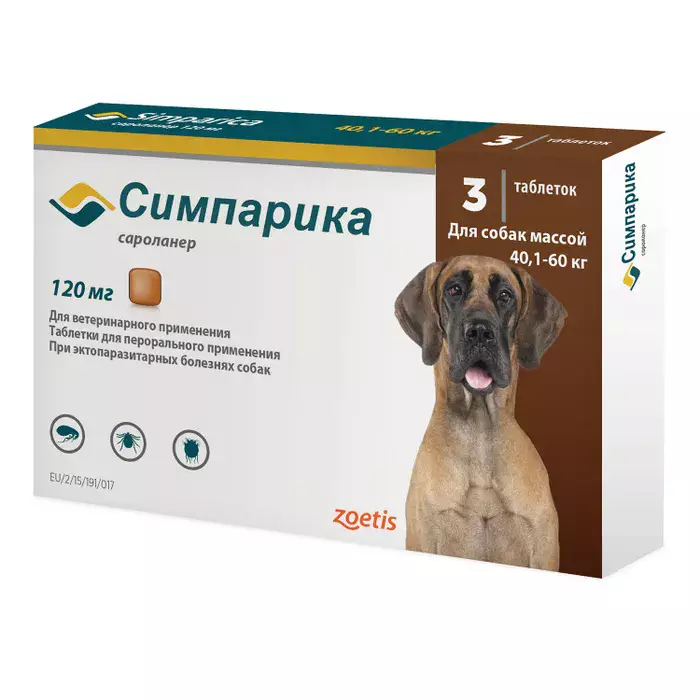 1таб*120мг Симпарика Zoetis таблетки от блох и клещей для собак массой 40-60кг