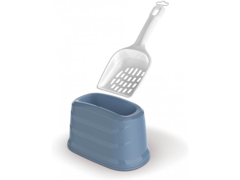 Совок с подставкой для уборки лотка. Решает проблему с хранением совка после уборки/использования.