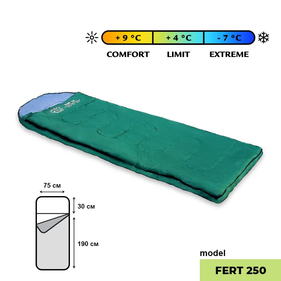 Главная Каталог Туристические товары Спальные мешки Спальный мешок GOLDEN SHARK Fert 250, 220х75см правая молния