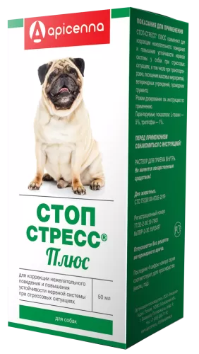 Капли Стоп-Стресс Плюс Apicenna для коррекции поведения при стрессовых ситуациях у собак, 50мл