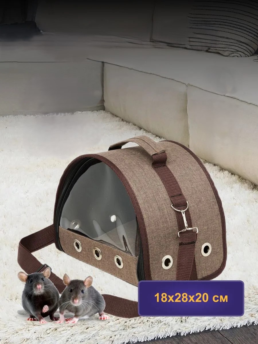 Удобная переноска имеет размер 18х28х20 см. Подходит для крыс, ёжиков, морских свинок, мышей и попугаев. Рекомендованный вес до 3 КГ. Выполнена из износостойкой ткани оксфорд. Есть мягкий съемный матрасик. Жесткий каркас не позволяет переноске складываться при её использовании. Подкладка изготовлена из флиса.