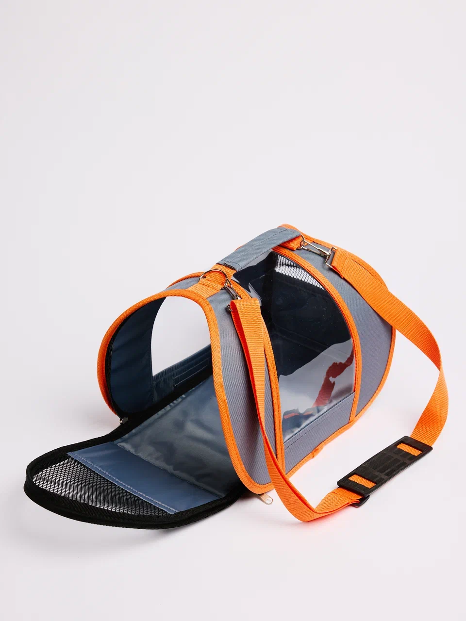 Качественные замки создают условия для безопасности. Удобно носить за крепкую ручку. Есть съемный регулируемый ремень, чтобы было комфортно брать питомца с собой. Раскладывается, благодаря замку по всему ее периметру. Вы сможете ее компактно хранить, укрепив ремнем.