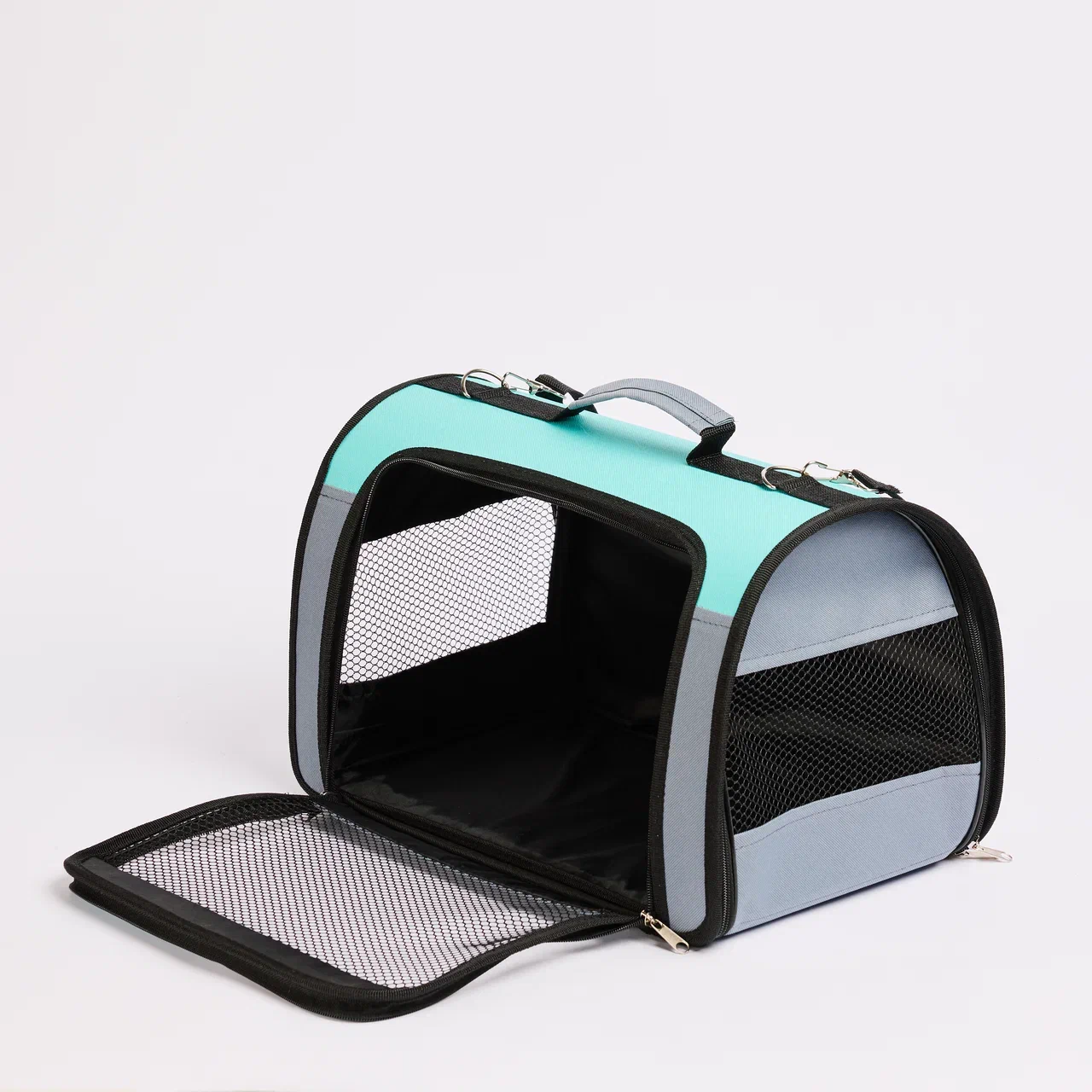 Сумка-переноска для животных "Изумруд" 46*28*29см. Подойдет для путешествий и посещения ветеринарной клиники.С дополнительным входом, три сетки. Раскладная каркасная, съёмный ремень на плечо, пластик, пвх, подклад оксфорд. Жесткое съёмное дно.