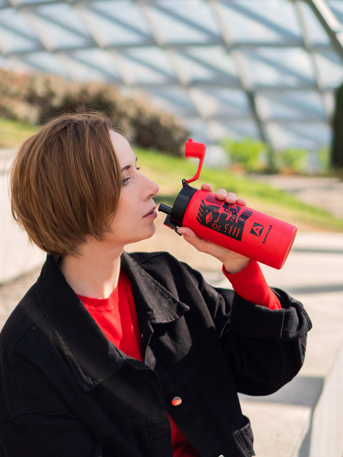 Специальный колпачок защищает носик для питья от пыли. Выполнен из долговечной пищевой нержавеющей стали. В линейке представлены 3 оригинальных дизайна, чтобы каждый мог выбрать для себя подходящую расцветку и подчеркнуть свою индивидуальность. Гарантия на вакуум – 5 лет.