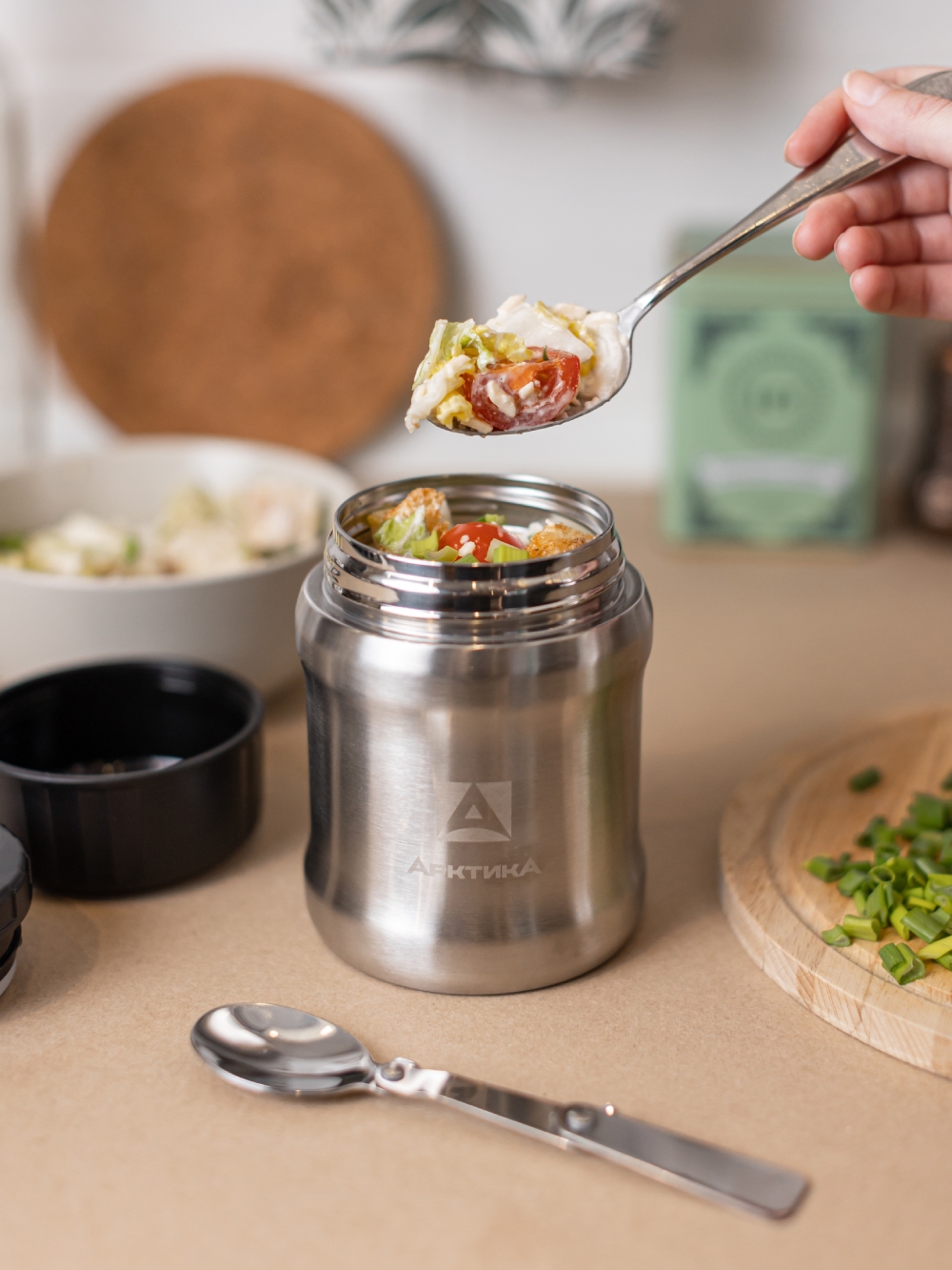 Самый легкий термос для еды среди моделей «Арктики» – всего 330 граммов при объеме 500 мл. Поместится в женской сумочке или в рюкзаке и не оставит голодным на работе и учебе. Поддерживает тепло первых и вторых блюд до 12 часов, а холод – до 24 часов. Выполнен из пищевой нержавеющей стали и пластика (BPA free), которые не влияют на вкус и безопасны для здоровья. Доступен в 5 расцветках с износостойким текстурным напылением.