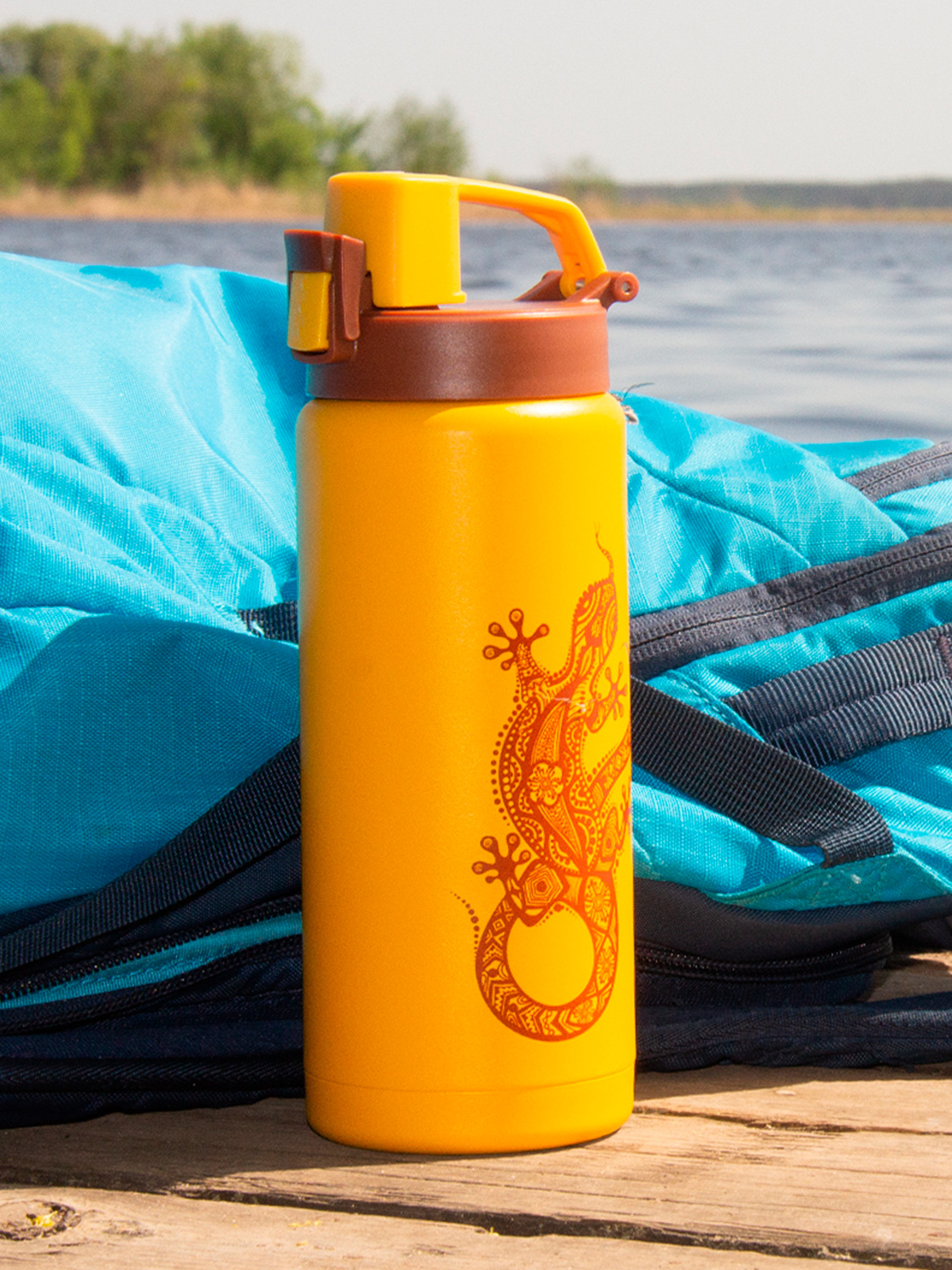 Специальный колпачок защищает носик для питья от пыли. Выполнен из долговечной пищевой нержавеющей стали. В линейке представлены 11 оригинальных дизайнов, чтобы каждый мог выбрать для себя подходящую расцветку и подчеркнуть свою индивидуальность. Гарантия на вакуум – 5 лет.