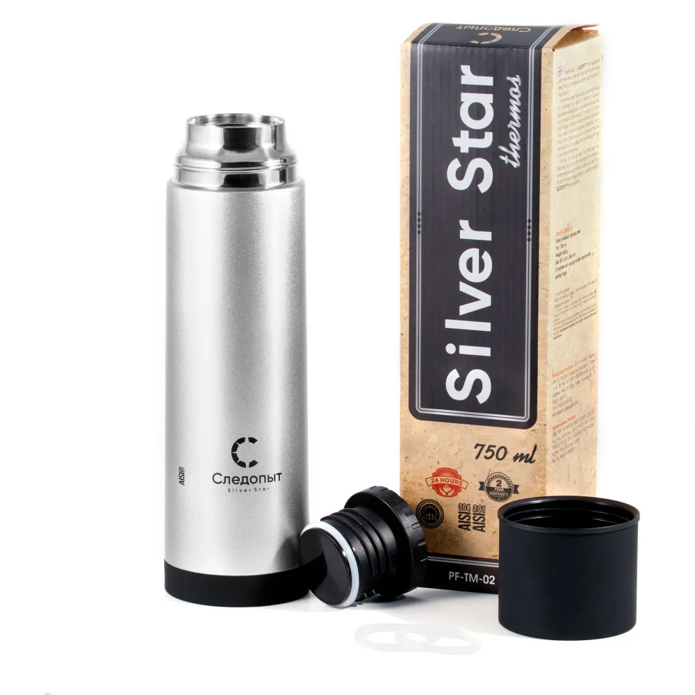 Термос «Следопыт SILVER STAR» оснащен стальным корпусом и колбой из пищевой нержавеющей стали, что гарантирует изделию долговечность и надежность.