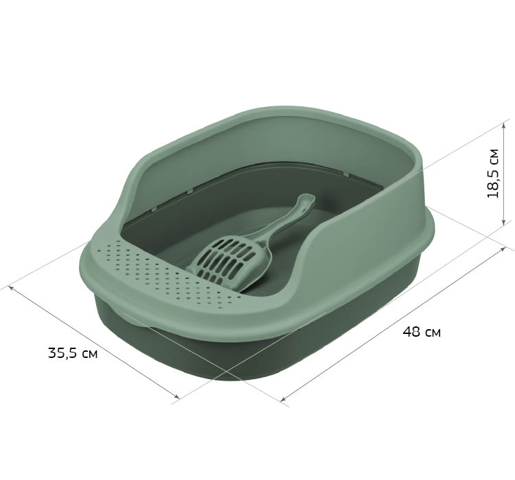 IDEA Лоток с высоким бортом ЛЯ-МУРР с совком —лоток предназначен для кошек маленьких и средних пород, которые любят копаться в наполнителе.