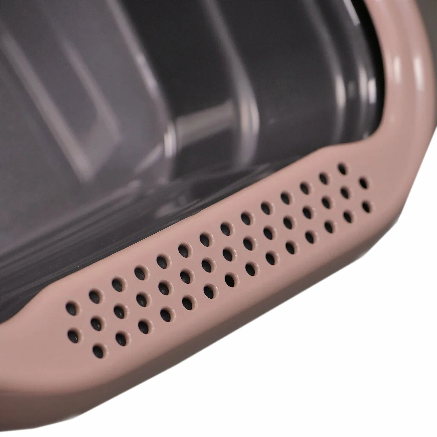 Туалет-лоток оснащен бортиком, который препятствует рассыпанию наполнителя и сохраняет чистоту пола. Высокие бортики также делают процесс уборки более удобным и гигиеничным.