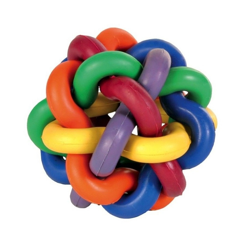 Ekia Плетеный мячик из цельной литой резины с колокольчиком – игрушка из высокопрочного материала. Выдерживает большие нагрузки. Незаменима для собак с сильной жевательной потребностью.