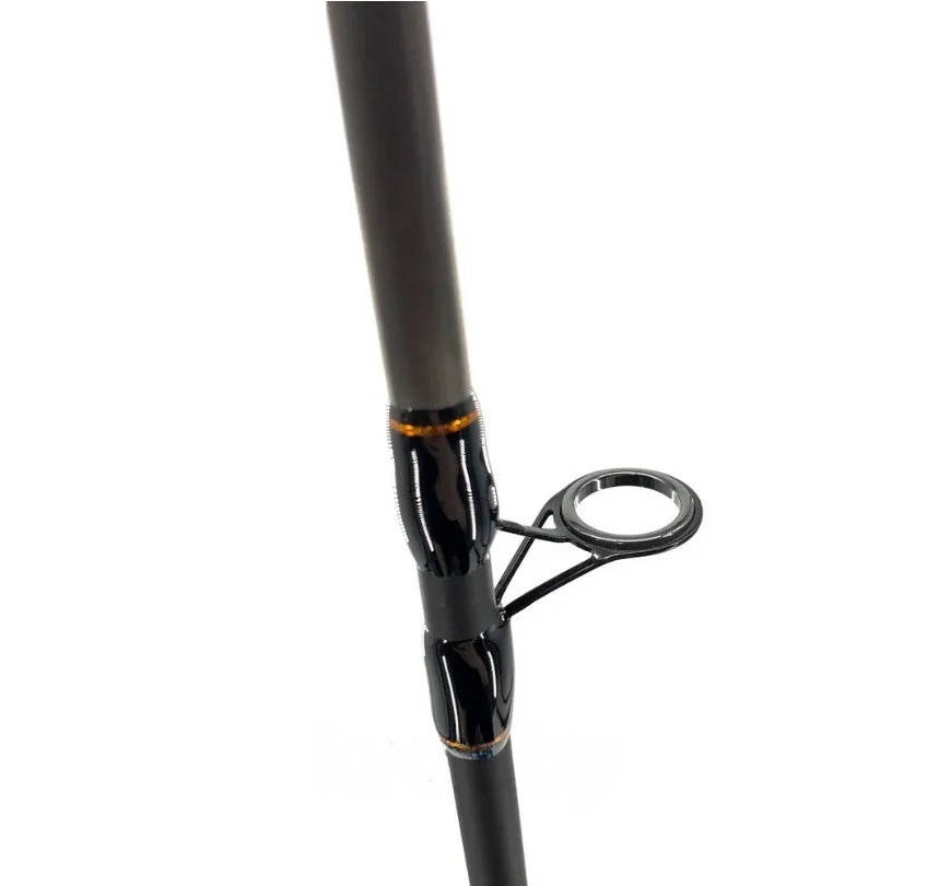 Также хочется отметить что все кольца имеют керамические SIC вставки, что очень хорошо сказывается на дальности заброса и износе шнура. Комбинированная рукоять из неопрена и пробки, надежный винтовой катушкодержатель. В зависимости от длины имеет двухчастную или трёхчастную конструкцию, и комплектуется 3 сменными вершинками.